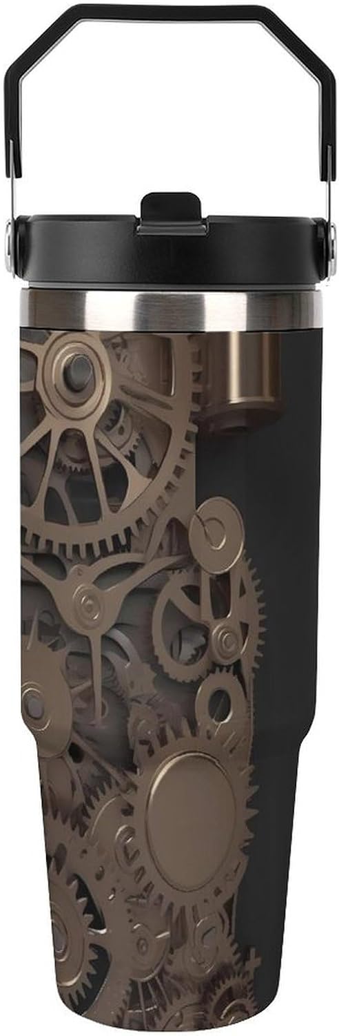 Our Steampunk Mechanical Gears travel water bottle is made of food-grade stainless steel. The wide mouth design makes it easy to clean and add ice, and the powder-coated exterior is non-slip and durable, ensuring driving safety.Whether you prefer sipping or quenching your thirst, this personalized insulated mug has you covered. Featuring a splash-proof straw design, a sealing ring securely holds the reusable straw, and a drinking spout and full-coverage lid for enhanced leak-proof performance, this mug allows you to easily carry ice water to work, meetings, the gym, or on trips.You can give it to your friends and family as a birthday, Mother's Day, Father's Day, New Year's, Thanksgiving, and holiday gift. It's a thoughtful present.