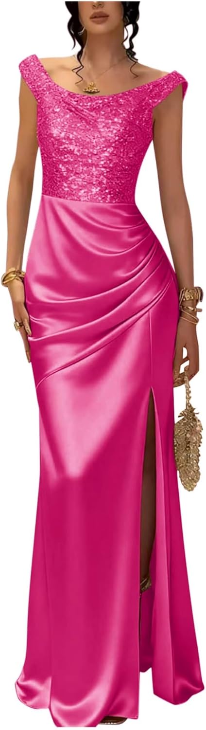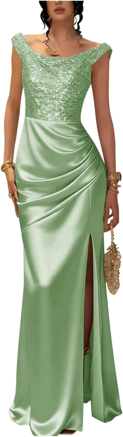 Item Description: This Off Shoulder Sequin Satin Cowl Neck Prom Dresses Mermaid Sparkly Sexy Elegant Evening Formal Ball Gowns shows the sexy and elegant beauty of women, is every woman deserves to have. Custom Made: Dresses can be made according to your measurements with no more charges,the measurements we need is:1.Bust 2.Waist 3.Hips 4.Hollow(or Shoulder) to Floor 5.The height of your high heel shoes. Occasion:Prom Dresses,Party Dress,Formal, Evening,Concert,Black tie,Ball,and so on Waistline:Natural Decoration:Sequin Satins Fabric Type:Sequin Satins Dresses Length:Floor length long, ball gown with Slit